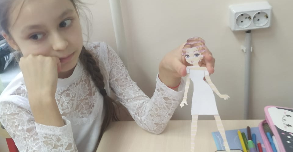 Алена поделилась опытом работы над проектом с обучающимися 5 классов, которые тоже изобразили свои идеи на бумаге, создав эскизы костюмов.